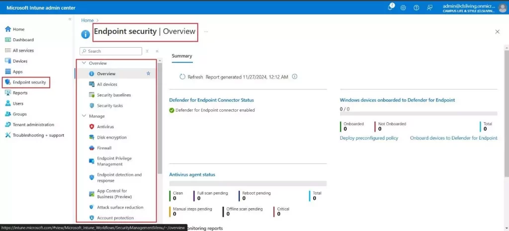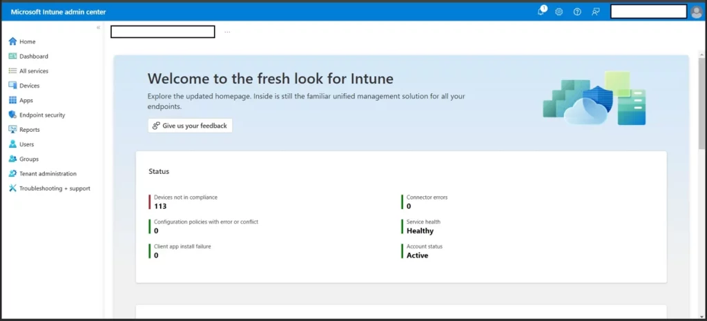 Permissions: Access to Microsoft Endpoint Manager by Administrator.