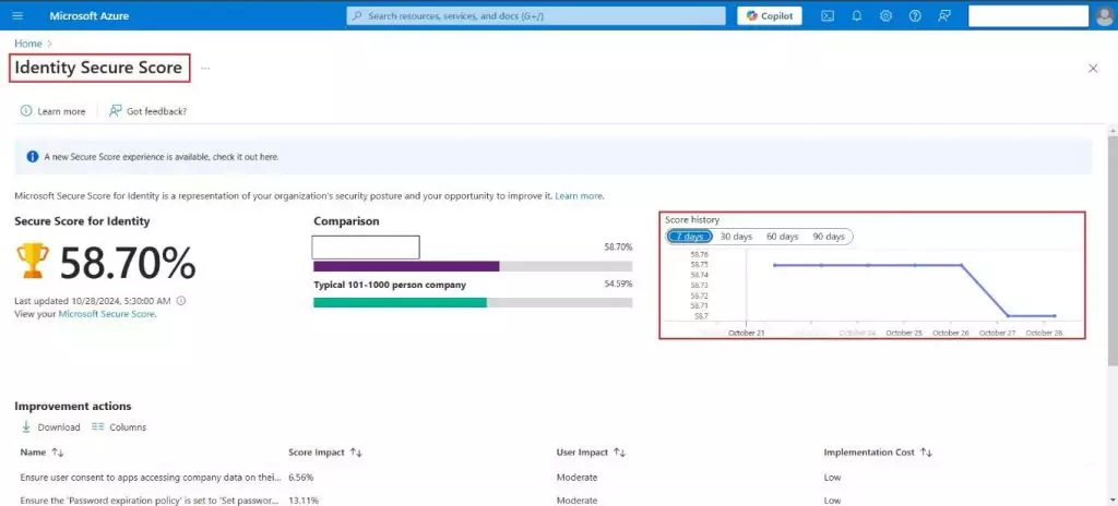 Security Score in Microsoft 365 gives us an idea of how secure is the organization by recommending which actions could be taken to enhance security.