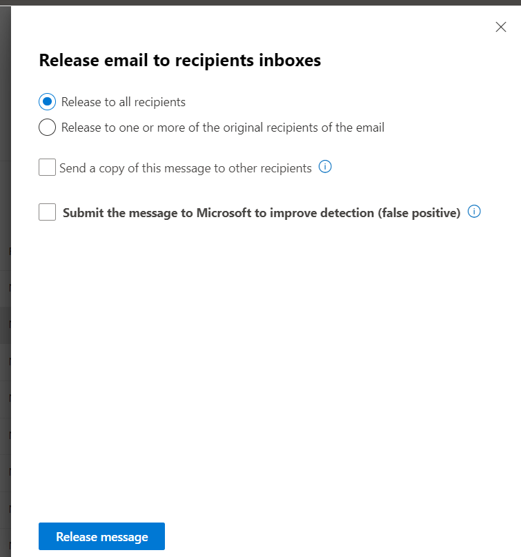 - Review the quarantined emails and perform suitable action (release, deletion, mark false positive)